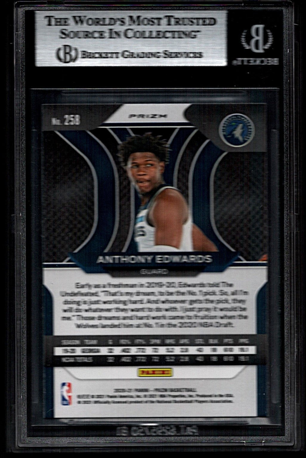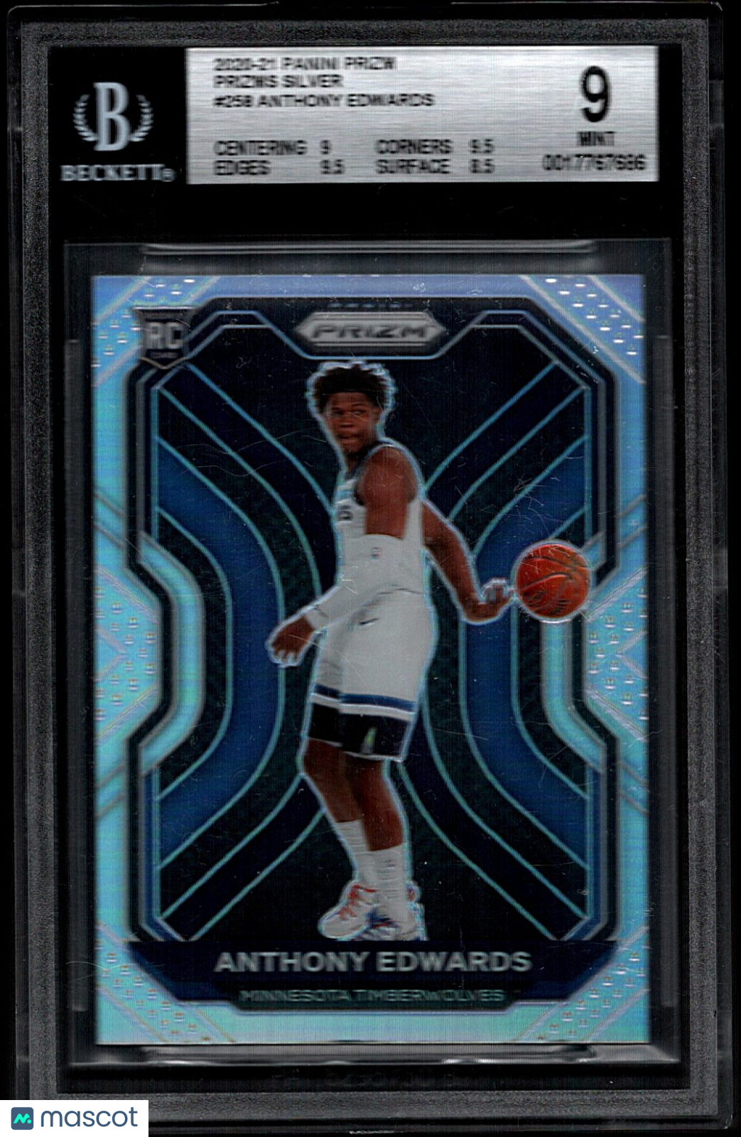 You are purchasing a Anthony Edwards 2020-21 Panini Prizm #258 Silver Prizm Rookie RC BGS9 MINT. You will receive the exact card shown in the photos. CONDITION GUARANTEE We provide detailed, high-resolution photos of every card. What you see is exactly what you'll receive. COMPETITIVE PRICING NOTICE Our cards are priced competitively based on current market data and recent sales. We regularly review and adjust our pricing to ensure fair market value for both buyers and collectors. PAYMENT POLICY ATX Cards requires all payments within FOUR (4) DAYS of purchase. Failure to make payment will result in cancellation of the order. SHIPPING All items are packaged with professional protective materials using USPS First Class or Priority. FREE COMBINED SHIPPING on multiple purchases. ABOUT US Based in the heart of Texas, we're passionate about bringing the sports card hobby to life as collectors serving collectors. Whether you're chasing vintage gems from the golden era or ultra-modern slabs fresh from the latest releases, every card in our inventory is hand-selected and thoroughly examined to ensure authenticity, quality, and fair pricing. Listed With Mascot.