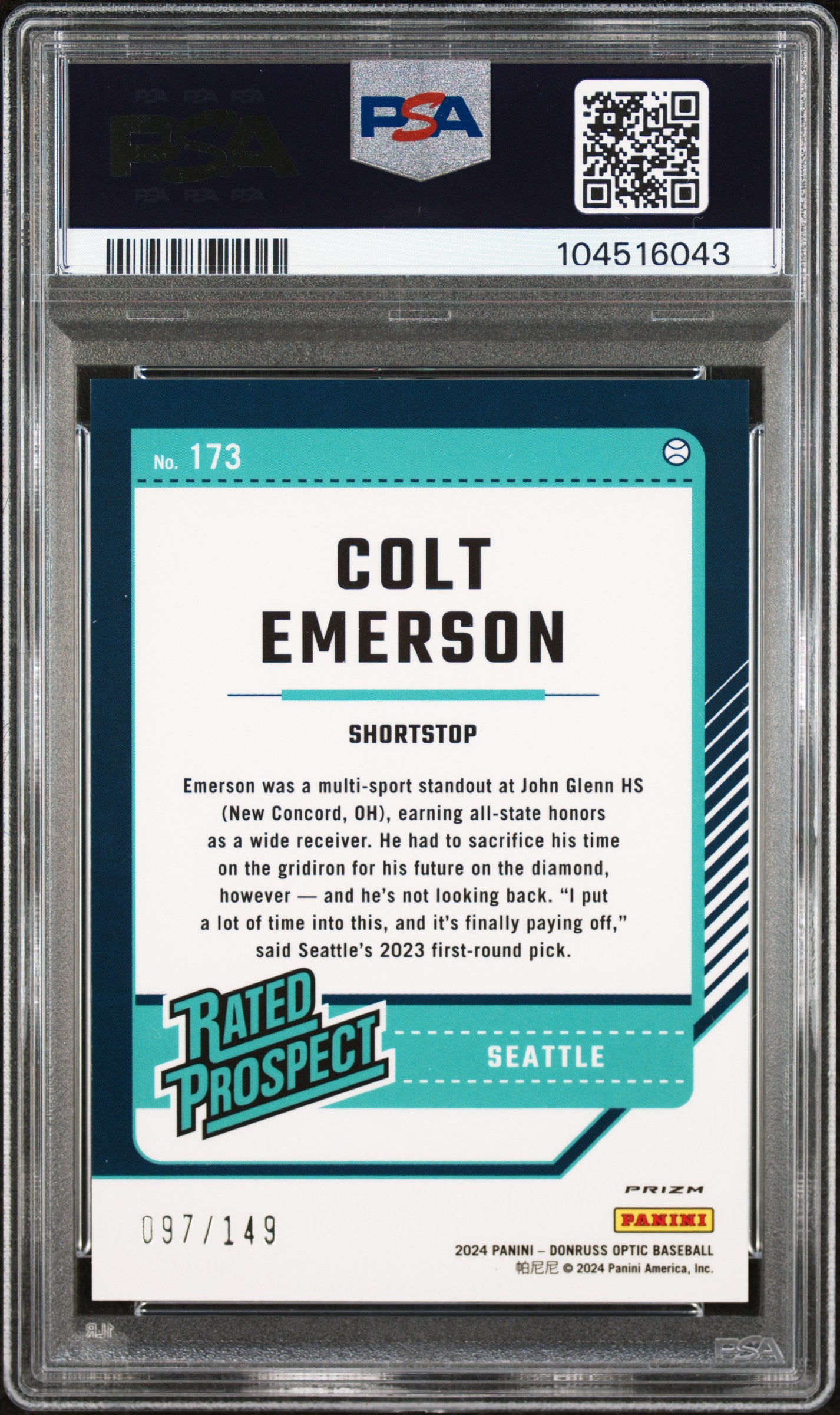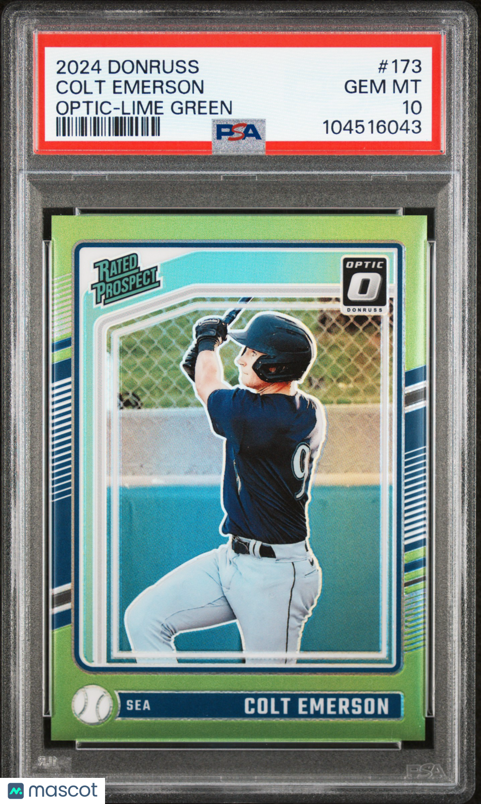 Colt Emerson 2024 Panini Donruss #173 Optic Lime Green /149 RC PSA10 GEM MT