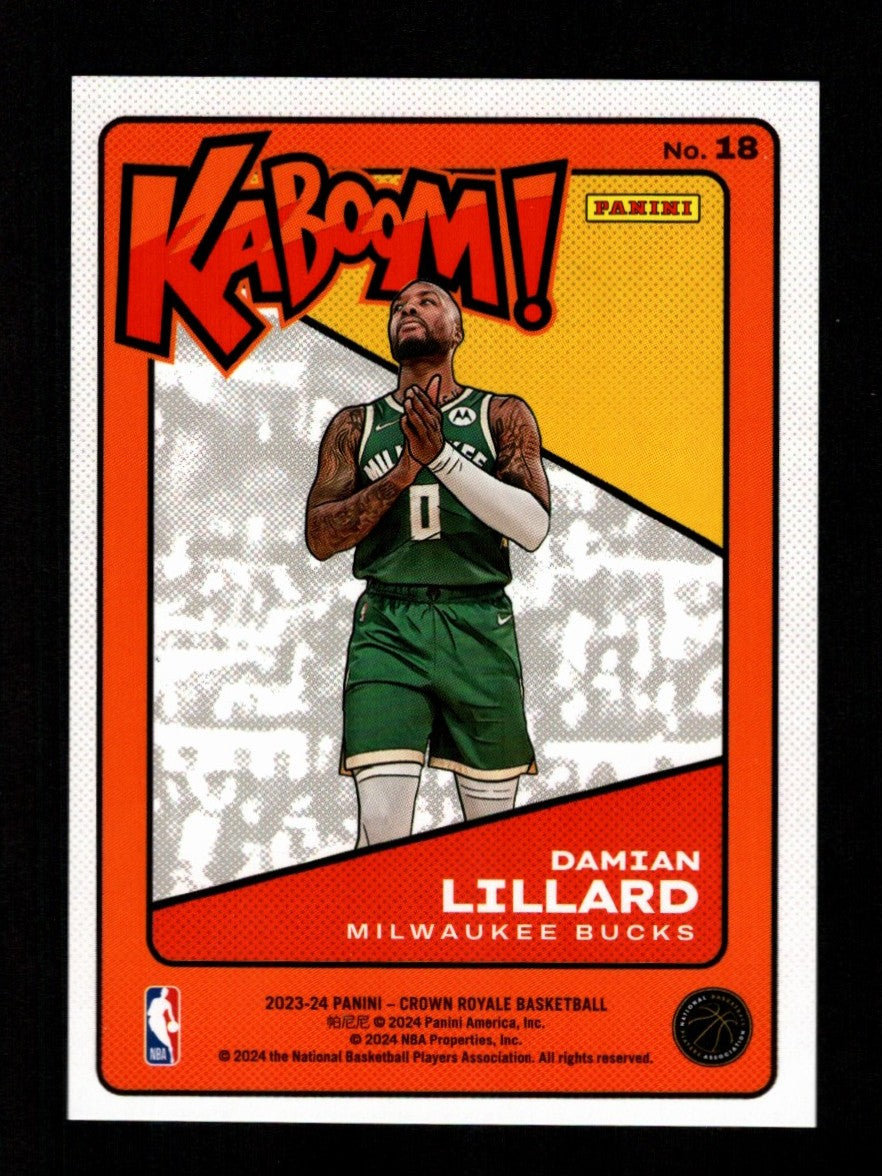You are purchasing a Damian Lillard 2024 2023-24 Panini Crown Royale #18 Kaboom Case Hit SSP Bucks. You will receive the exact card shown in the photos. CONDITION GUARANTEE We provide detailed, high-resolution photos of every card. What you see is exactly what you'll receive. COMPETITIVE PRICING NOTICE Our cards are priced competitively based on current market data and recent sales. We regularly review and adjust our pricing to ensure fair market value for both buyers and collectors. PAYMENT POLICY ATX Cards requires all payments within four (4) days of purchase. Failure to make payment will result in cancellation of the order. SHIPPING All items are packaged with professional protective materials using USPS First Class or Priority. FREE COMBINED SHIPPING on multiple purchases. ABOUT US ATX Cards & Collectibles is your trusted Austin, Texas source for sports cards and collectibles. You can find us on our website, eBay, COMC, MyCardPost, Instagram, WhatNot, and at card shows nationwide. Whether you're buying, selling, or trading, we're here to help you build your collection. Listed With Mascot.