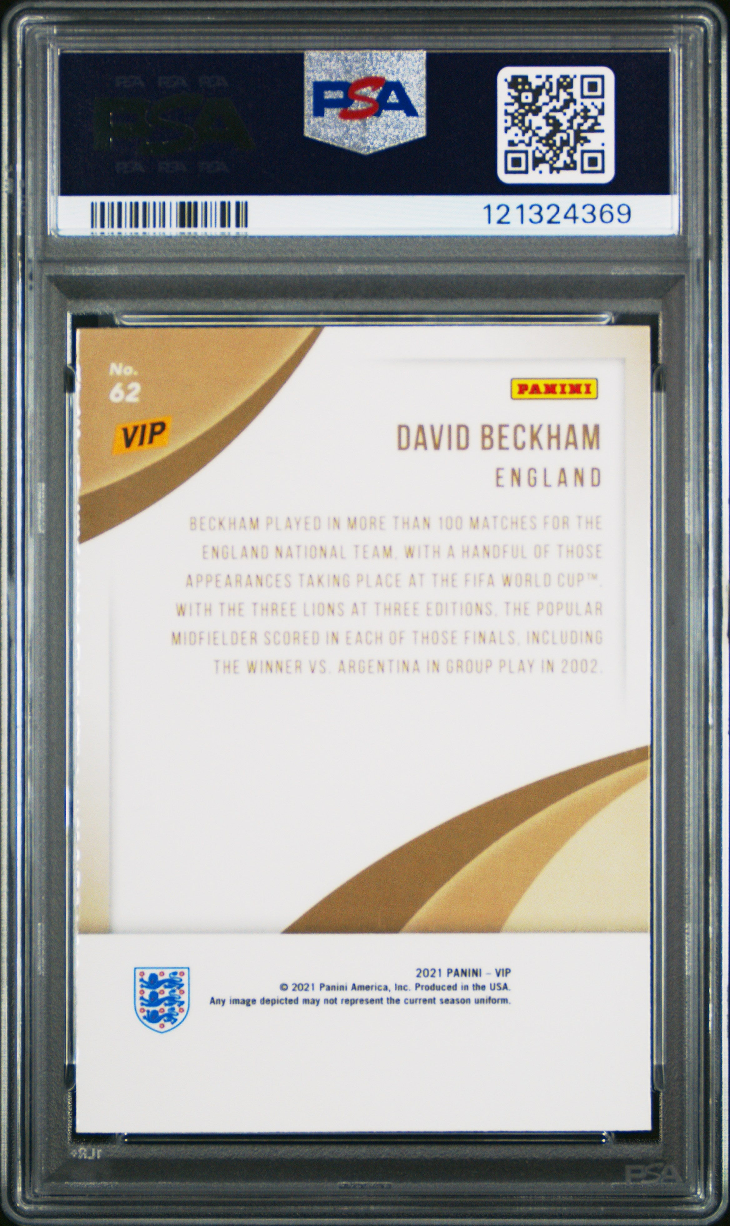 You are purchasing a David Beckham 2022 Panini National VIP #62 PSA10 GEM MT England. You will receive the exact card shown in the photos. CONDITION GUARANTEE We provide detailed, high-resolution photos of every card. What you see is exactly what you'll receive. COMPETITIVE PRICING NOTICE Our cards are priced competitively based on current market data and recent sales. We regularly review and adjust our pricing to ensure fair market value for both buyers and collectors. PAYMENT POLICY ATX Cards requires all payments within FOUR (4) DAYS of purchase. Failure to make payment will result in cancellation of the order. SHIPPING All items are packaged with professional protective materials using USPS First Class or Priority. FREE COMBINED SHIPPING on multiple purchases. ABOUT US Based in the heart of Texas, we're passionate about bringing the sports card hobby to life as collectors serving collectors. Whether you're chasing vintage gems from the golden era or ultra-modern slabs fresh from the latest releases, every card in our inventory is hand-selected and thoroughly examined to ensure authenticity, quality, and fair pricing. Listed With Mascot.