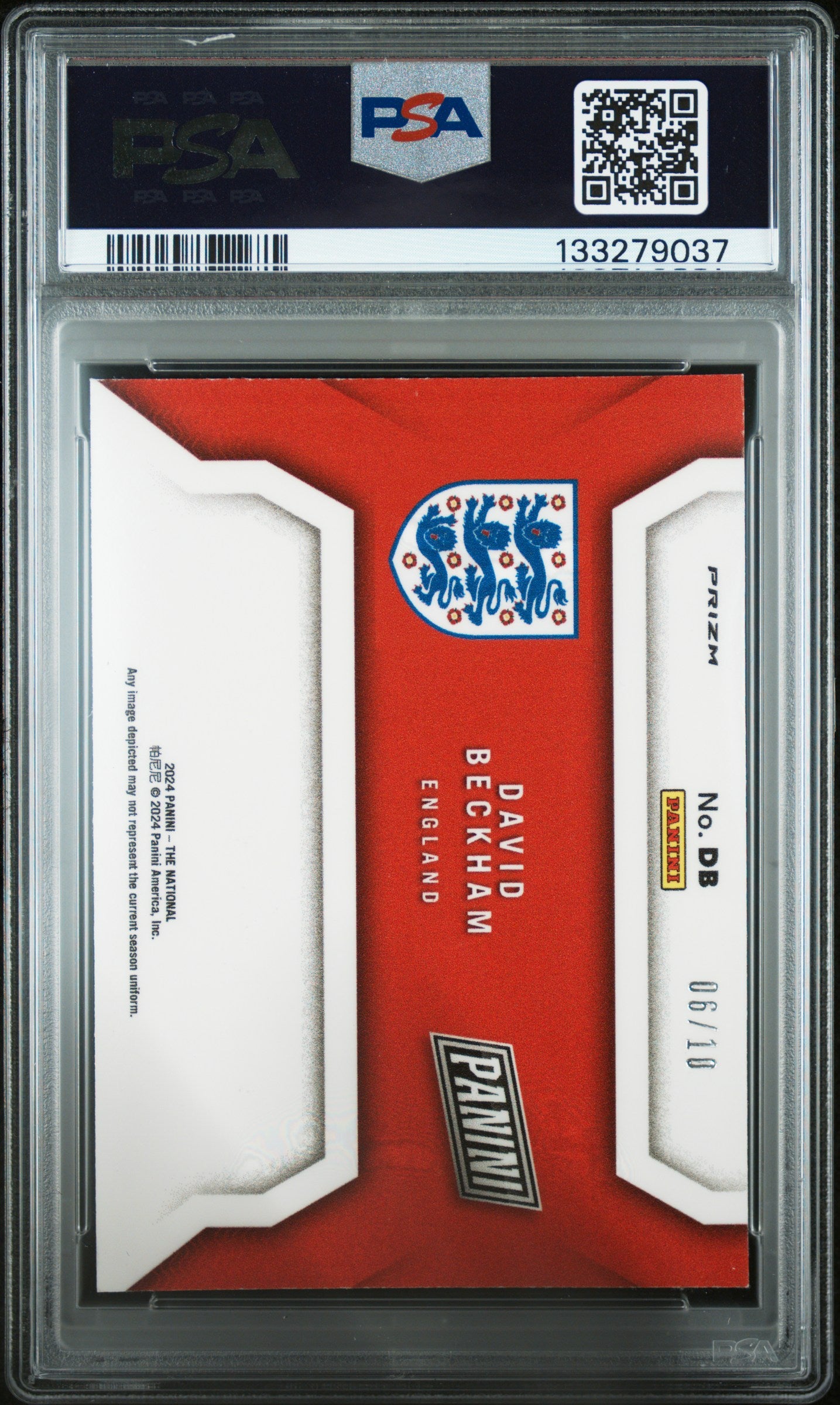 David Beckham 2024 Panini NSCC Gold #DB Color Blast Silver /10 SSP PSA8 NM-MT
