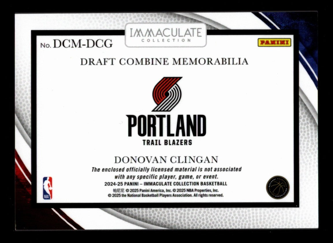 You are purchasing a Donovan Clingan 2024-25 Panini Immaculate #DCM-DCG Draft Combine Patch /99 RC. You will receive the exact card shown in the photos. CONDITION GUARANTEE We provide detailed, high-resolution photos of every card. What you see is exactly what you'll receive. COMPETITIVE PRICING NOTICE Our cards are priced competitively based on current market data and recent sales. We regularly review and adjust our pricing to ensure fair market value for both buyers and collectors. PAYMENT POLICY ATX Cards requires all payments within four (4) days of purchase. Failure to make payment will result in cancellation of the order. SHIPPING All items are packaged with professional protective materials using USPS First Class or Priority. FREE COMBINED SHIPPING on multiple purchases. ABOUT US ATX Cards & Collectibles is your trusted Austin, Texas source for sports cards and collectibles. You can find us on our website, eBay, COMC, MyCardPost, Instagram, WhatNot, and at card shows nationwide. Whether you're buying, selling, or trading, we're here to help you build your collection. Listed With Mascot.