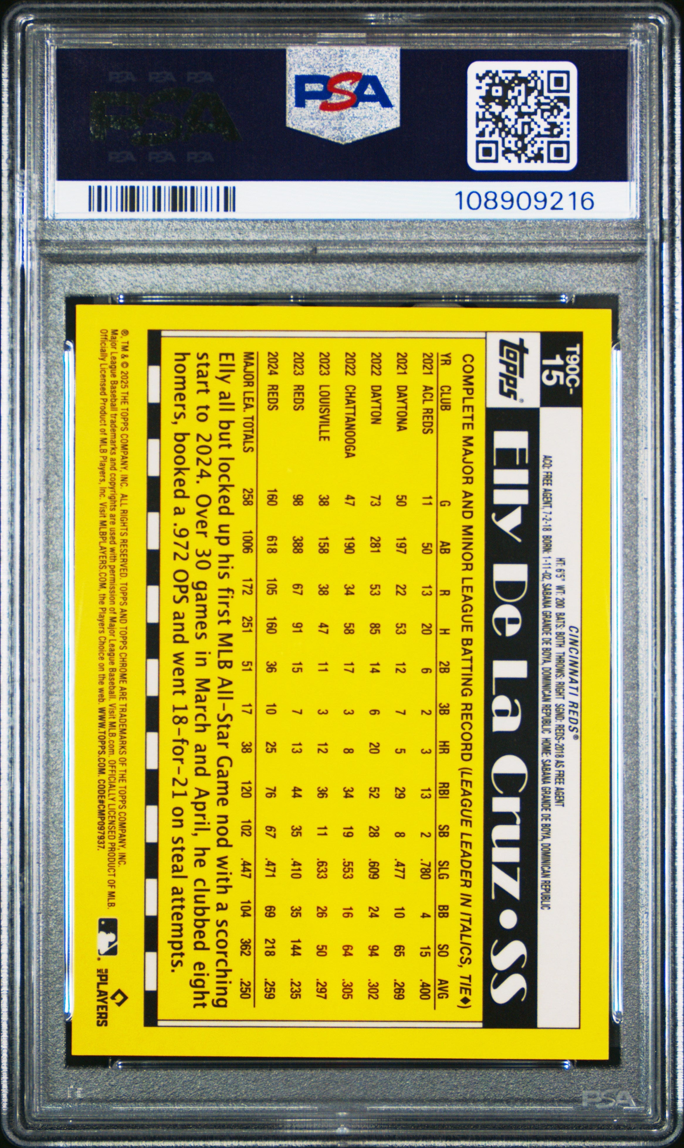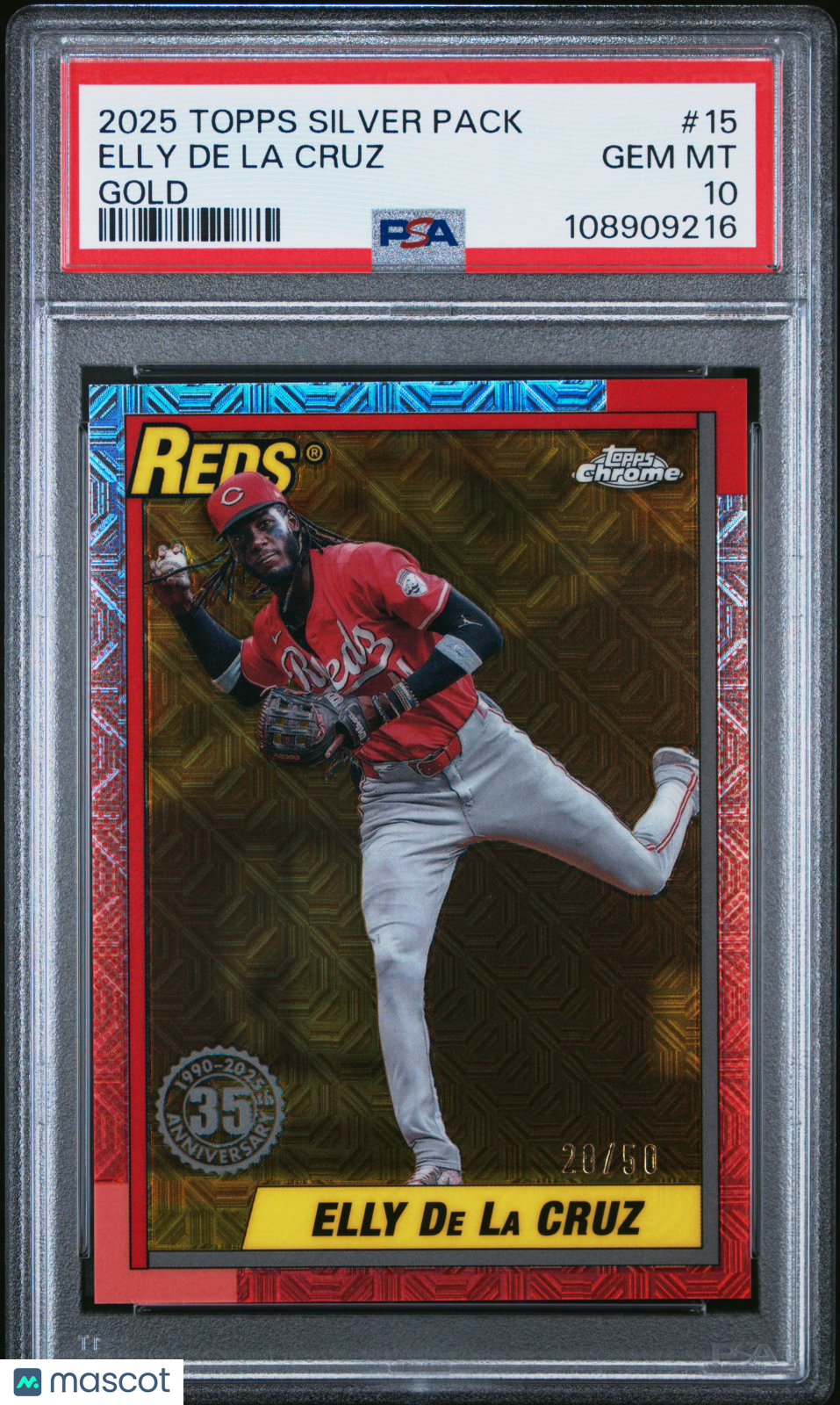 You are purchasing a Elly De La Cruz 2025 Topps Silver Pack #15 Gold Refractor /50 PSA10 GEM MT. You will receive the exact card in the photos. All unsolicited inquiries such as "What is your best price?" will not receive a response. Our pricing is competitive and based on recent comps, typically reflecting the last three sales. Payment Policies ATX Cards require all payments to be made in 48 hours unless prior approval or waiting on a combined shipping invoice. Return Policy ATX Cards does NOT accept returns. Shipping ATX Cards ships most cards using USPS First Class or Priority. We combine shipping on all purchases and can send you a combined shipping invoice when ready. About Us ATX Cards is Austin's go-to destination for a curated selection of unique cards and collectibles at competitive prices. Follow us on IG @atxcardscollectibles. Listed With Mascot.