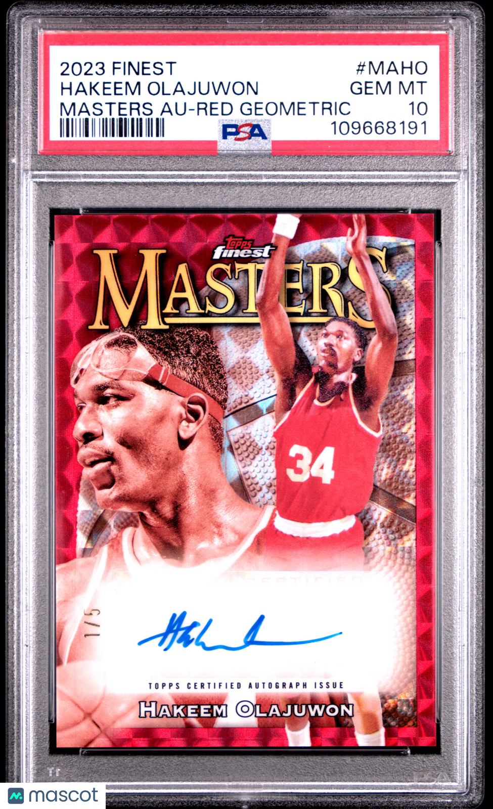 Hakeem Olajuwon 2023-24 Topps Finest Masters Red Geometric /5 Auto PSA10 GEM MT