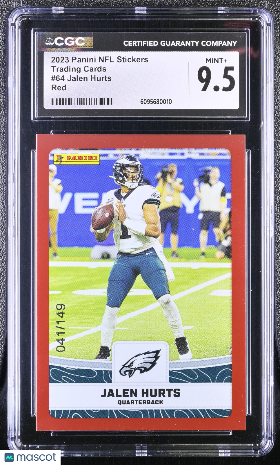 Jalen Hurts 2023 Panini NFL Stickers #64 Red Foil /149 CGC9.5 MINT+ Eagles