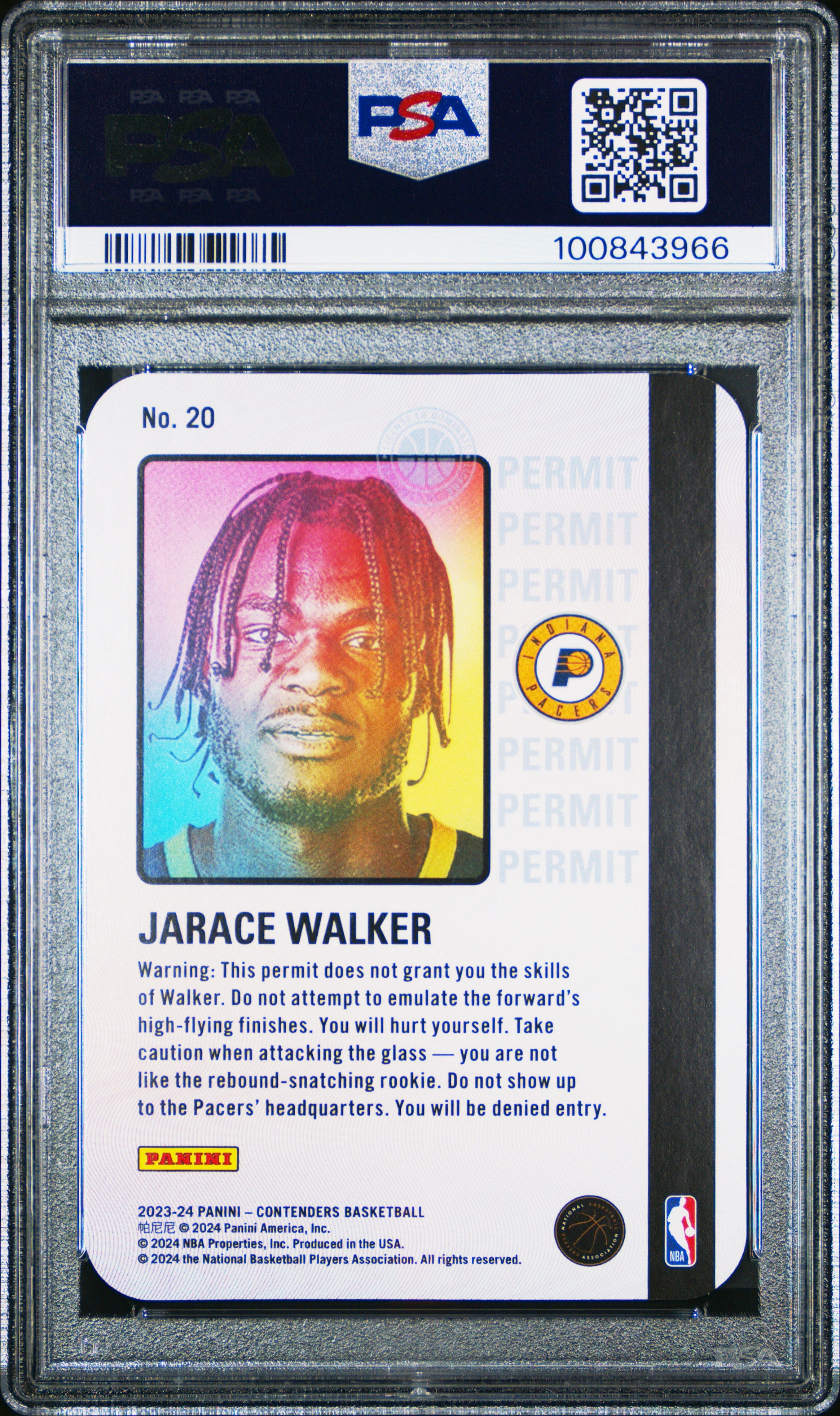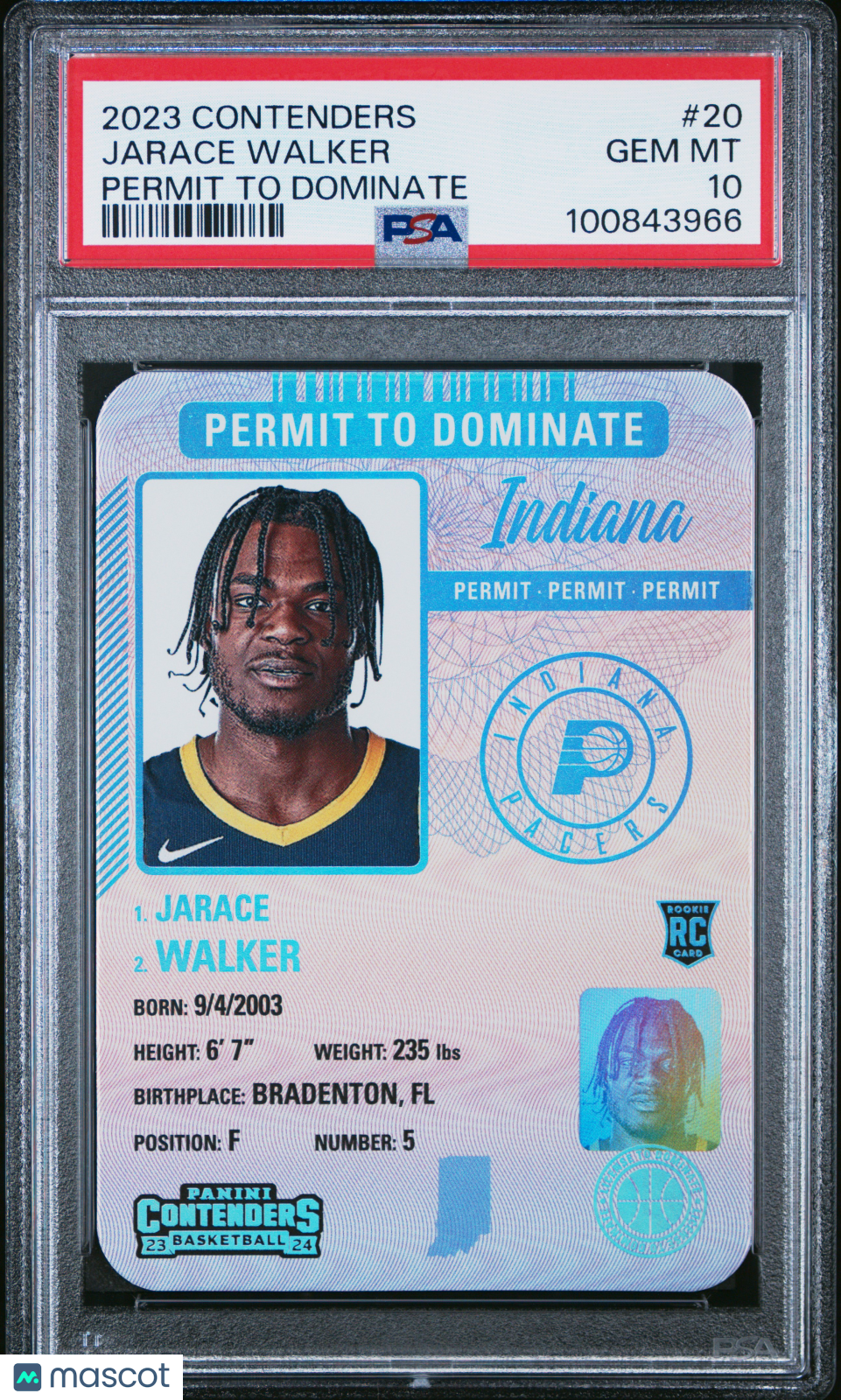 You are purchasing a Jarace Walker 2023 Panini Contenders #20 Permit To Dominate RC SSP PSA10 GEM MT. You will receive the exact card shown in the photos. CONDITION GUARANTEE We provide detailed, high-resolution photos of every card. What you see is exactly what you'll receive. COMPETITIVE PRICING NOTICE Our cards are priced competitively based on current market data and recent sales. We regularly review and adjust our pricing to ensure fair market value for both buyers and collectors. PAYMENT POLICY ATX Cards requires all payments within FOUR (4) DAYS of purchase. Failure to make payment will result in cancellation of the order. SHIPPING All items are packaged with professional protective materials using USPS First Class or Priority. FREE COMBINED SHIPPING on multiple purchases. ABOUT US Based in the heart of Texas, we're passionate about bringing the sports card hobby to life as collectors serving collectors. Whether you're chasing vintage gems from the golden era or ultra-modern slabs fresh from the latest releases, every card in our inventory is hand-selected and thoroughly examined to ensure authenticity, quality, and fair pricing. Listed With Mascot.