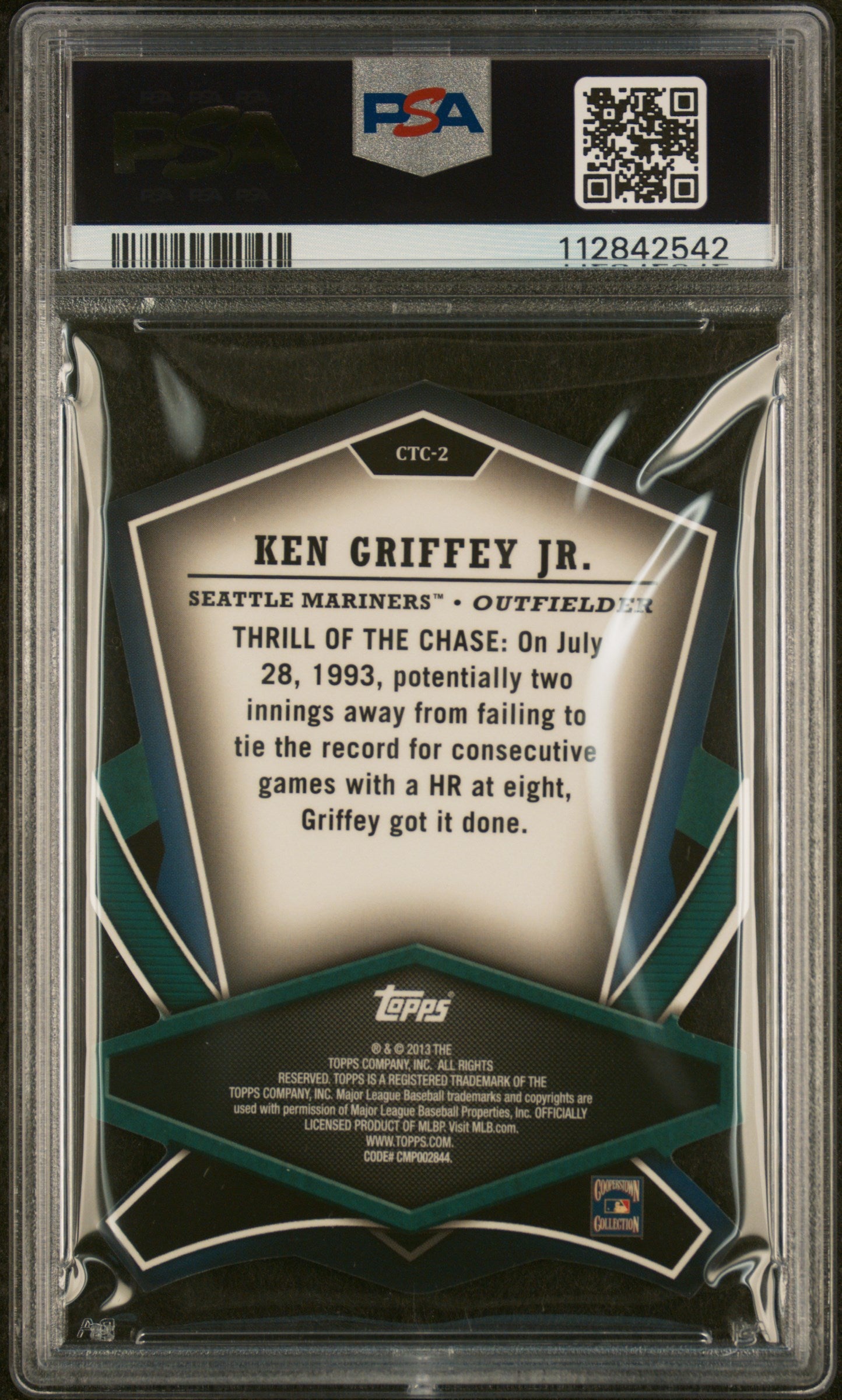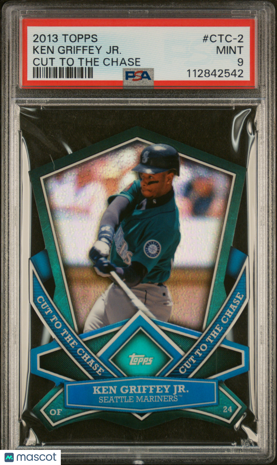 You are purchasing a Ken Griffey Jr. 2013 Topps #CTC-2 Cut To The Chase PSA9 MINT Mariners. You will receive the exact card shown in the photos. CONDITION GUARANTEE We provide detailed, high-resolution photos of every card. What you see is exactly what you'll receive. COMPETITIVE PRICING NOTICE Our cards are priced competitively based on current market data and recent sales. We regularly review and adjust our pricing to ensure fair market value for both buyers and collectors. PAYMENT POLICY ATX Cards requires all payments within four (4) days of purchase. Failure to make payment will result in cancellation of the order. SHIPPING All items are packaged with professional protective materials using USPS First Class or Priority. FREE COMBINED SHIPPING on multiple purchases. ABOUT US ATX Cards & Collectibles is your trusted Austin, Texas source for sports cards and collectibles. You can find us on our website, eBay, COMC, MyCardPost, Instagram, WhatNot, and at card shows nationwide. Whether you're buying, selling, or trading, we're here to help you build your collection. Listed With Mascot.