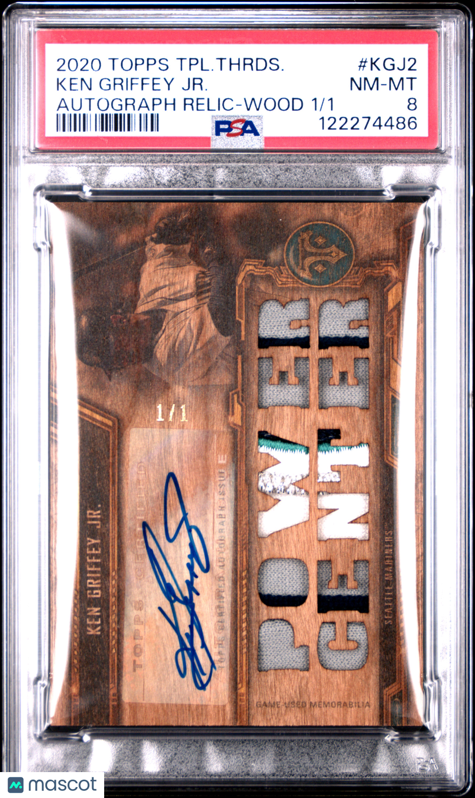 You are purchasing a Ken Griffey Jr. 2020 Topps Triple Threads Wood 1/1 Patch Auto PSA8 NM-MT. You will receive the exact card shown in the photos. CONDITION GUARANTEE We provide detailed, high-resolution photos of every card. What you see is exactly what you'll receive. COMPETITIVE PRICING NOTICE Our cards are priced competitively based on current market data and recent sales. We regularly review and adjust our pricing to ensure fair market value for both buyers and collectors. PAYMENT POLICY ATX Cards requires all payments within four (4) days of purchase. Failure to make payment will result in cancellation of the order. SHIPPING All items are packaged with professional protective materials using USPS First Class or Priority. FREE COMBINED SHIPPING on multiple purchases. ABOUT US ATX Cards & Collectibles is your trusted Austin, Texas source for sports cards and collectibles. You can find us on our website, eBay, COMC, MyCardPost, Instagram, WhatNot, and at card shows nationwide. Whether you're buying, selling, or trading, we're here to help you build your collection. Listed With Mascot.
