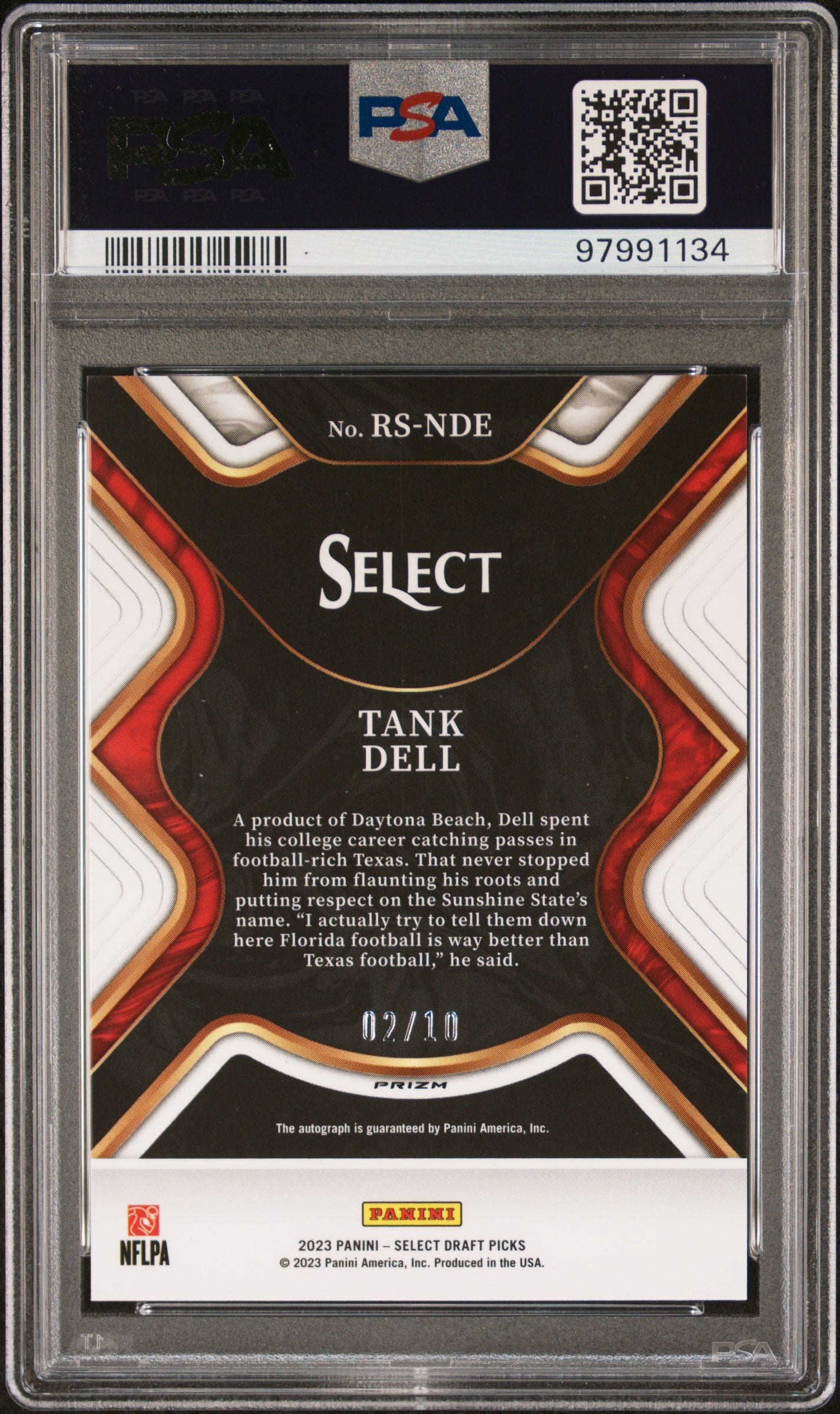 Tank Dell 2023 Panini Select DP Rookie Sigs Gold Prizm /10 RC Auto PSA9 MINT