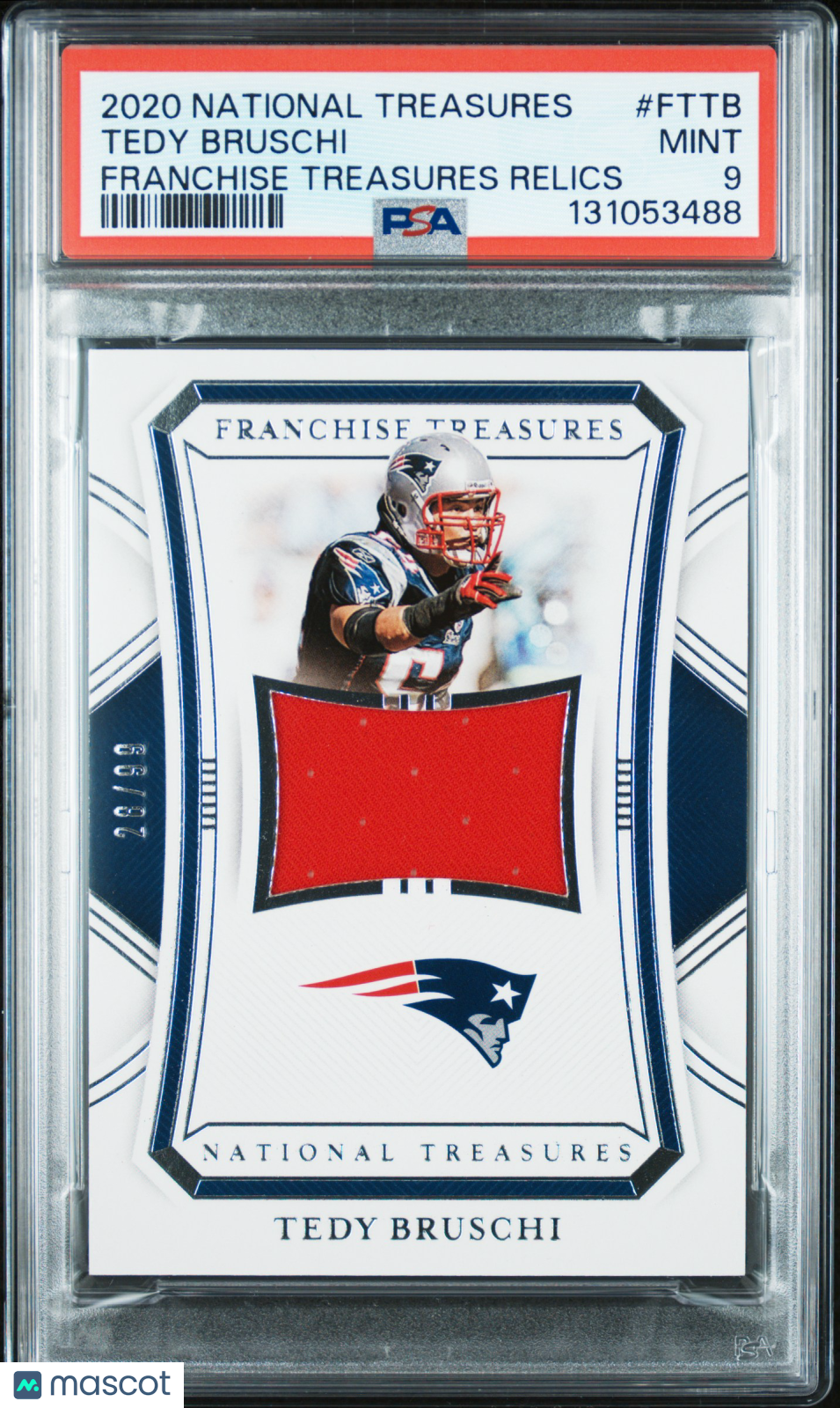 You are purchasing a Tedy Bruschi 2020 Panini National Treasures #FTTB Franchise Relics /99 PSA9 MINT. You will receive the exact card shown in the photos. CONDITION GUARANTEE We provide detailed, high-resolution photos of every card. What you see is exactly what you'll receive. COMPETITIVE PRICING NOTICE Our cards are priced competitively based on current market data and recent sales. We regularly review and adjust our pricing to ensure fair market value for both buyers and collectors. PAYMENT POLICY ATX Cards requires all payments within four (4) days of purchase. Failure to make payment will result in cancellation of the order. SHIPPING All items are packaged with professional protective materials using USPS First Class or Priority. FREE COMBINED SHIPPING on multiple purchases. ABOUT US ATX Cards & Collectibles is your trusted Austin, Texas source for sports cards and collectibles. You can find us on our website, eBay, COMC, MyCardPost, Instagram, WhatNot, and at card shows nationwide. Whether you're buying, selling, or trading, we're here to help you build your collection. Listed With Mascot.