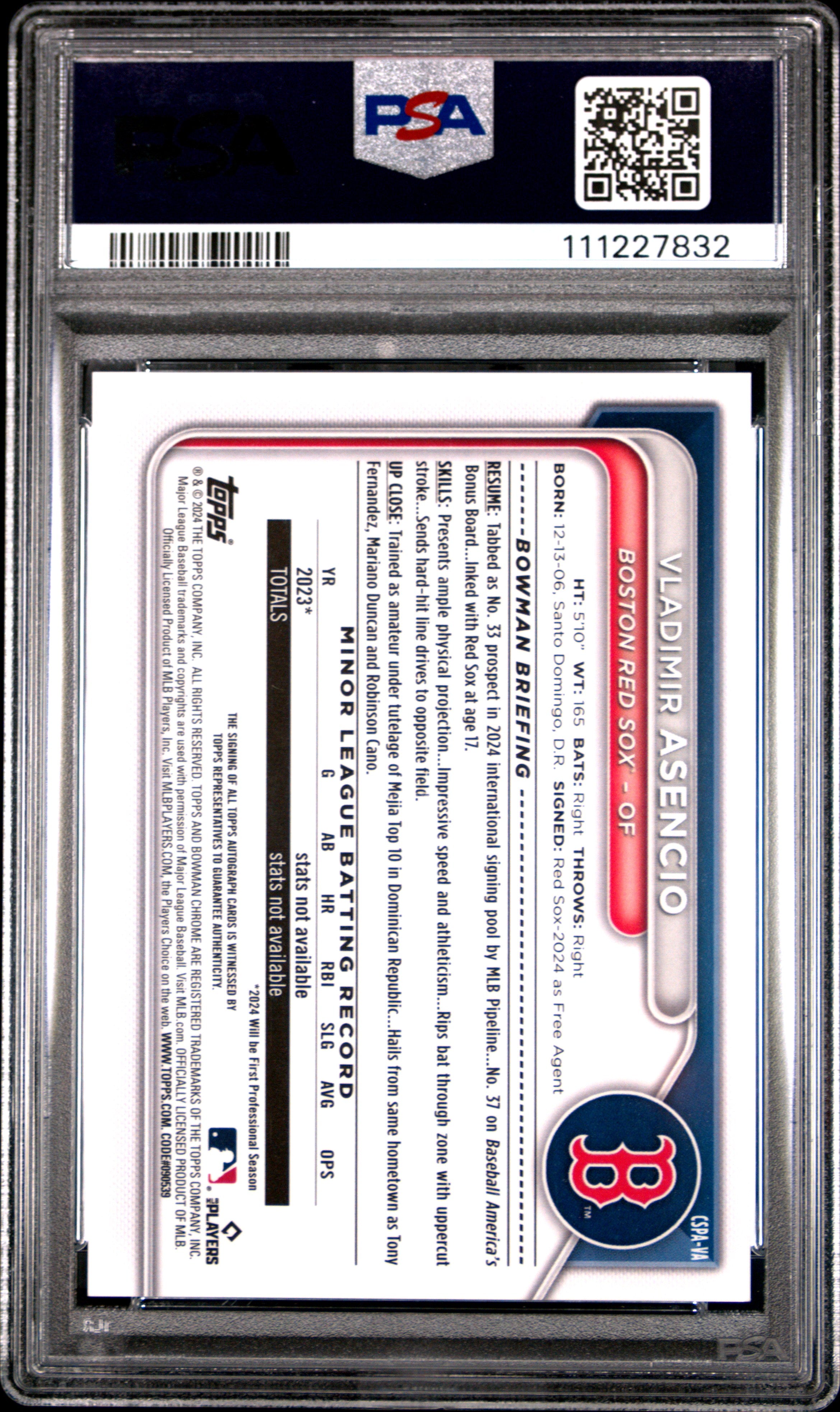 You are purchasing a Vladimir Asencio 2024 Bowman Chrome Sapphire #VA Green /99 Auto PSA9 MINT. You will receive the exact card shown in the photos. CONDITION GUARANTEE We provide detailed, high-resolution photos of every card. What you see is exactly what you'll receive. COMPETITIVE PRICING NOTICE Our cards are priced competitively based on current market data and recent sales. We regularly review and adjust our pricing to ensure fair market value for both buyers and collectors. PAYMENT POLICY ATX Cards requires all payments within four (4) days of purchase. Failure to make payment will result in cancellation of the order. SHIPPING All items are packaged with professional protective materials using USPS First Class or Priority. FREE COMBINED SHIPPING on multiple purchases. ABOUT US ATX Cards & Collectibles is your trusted Austin, Texas source for sports cards and collectibles. You can find us on our website, eBay, COMC, MyCardPost, Instagram, WhatNot, and at card shows nationwide. Whether you're buying, selling, or trading, we're here to help you build your collection. Listed With Mascot.